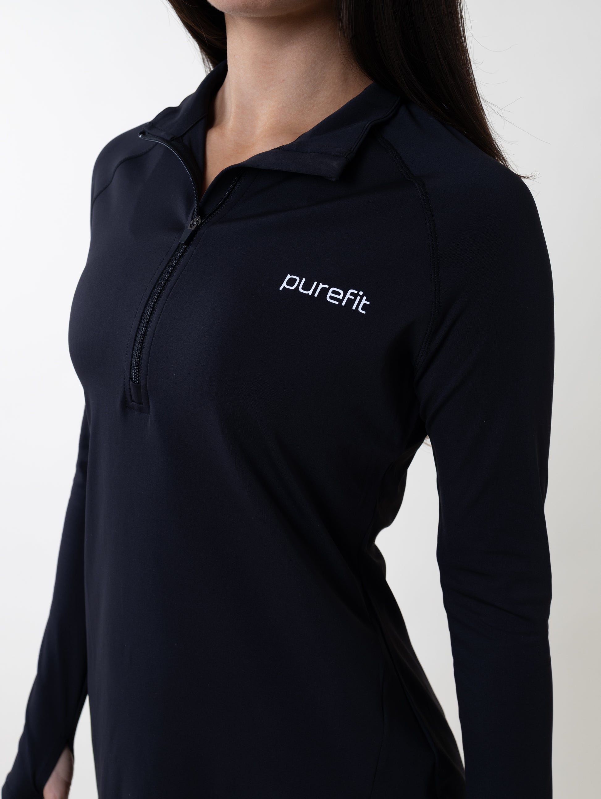Long Sleeve Zip Top är designad för att ge dig rörelsefrihet och täckning utan att kompromissa med stilen. Den har en längre, kurvad design som ger extra komfort och en följsam passform – perfekt för både träning och vardag.